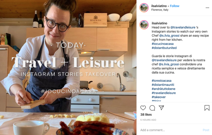 Travel & Leisure’s Culinary Escape When travel wasn’t possible, Travel & Leisure brought international experiences to followers’ homes through a takeover with Silvia Grossi, executive chef at Florence’s Il Salviatino hotel. Chef Grossi shared an accessible home cooking demonstration that transported viewers to Italian kitchens without leaving home—brilliantly adapting their travel content for stay-at-home circumstances.